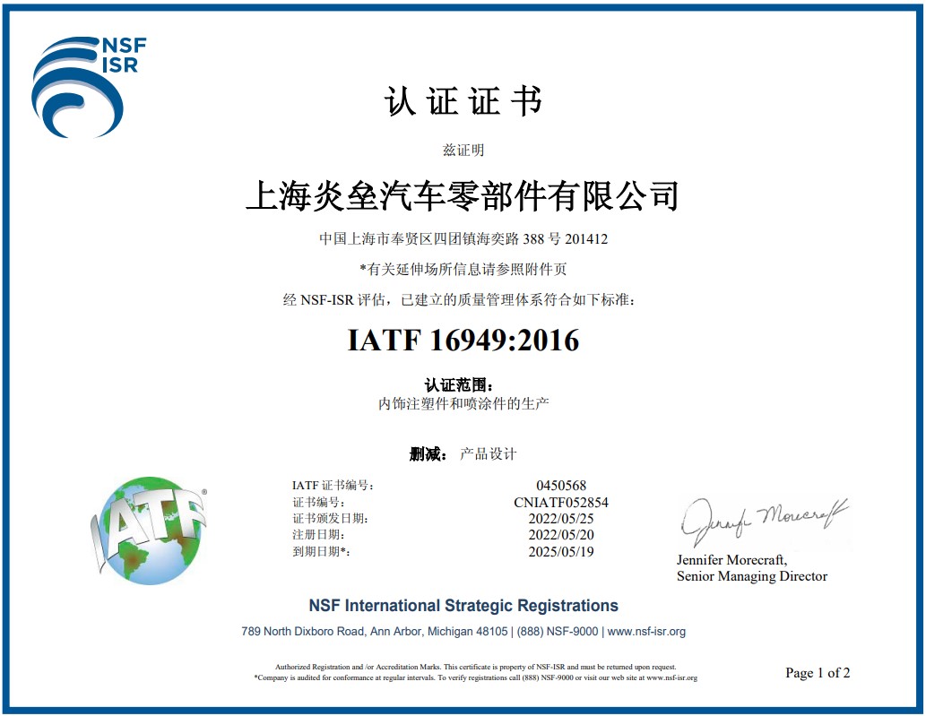 2006年9月公司高層決定成立“上海炎吉實業有限公司”,經歷了兩年汽車行業的發展,公司高層再次決議收購“上海銀洲塑料涂裝有限公司”,上海銀洲涂裝有限公司在2003年1月9日成立于東海之濱的上海市奉賢區四團鎮,坐落在有著“長壽之鄉”和“醉美四團”美譽之稱地四團工業園區。時至今日,公司在四團工業園區海奕路成功擴建并更名為“上海炎壘汽車零部件有限公司”,現公司擁有一支一流的技術和管理團隊,同時擁有一支能征善戰的員工隊伍。